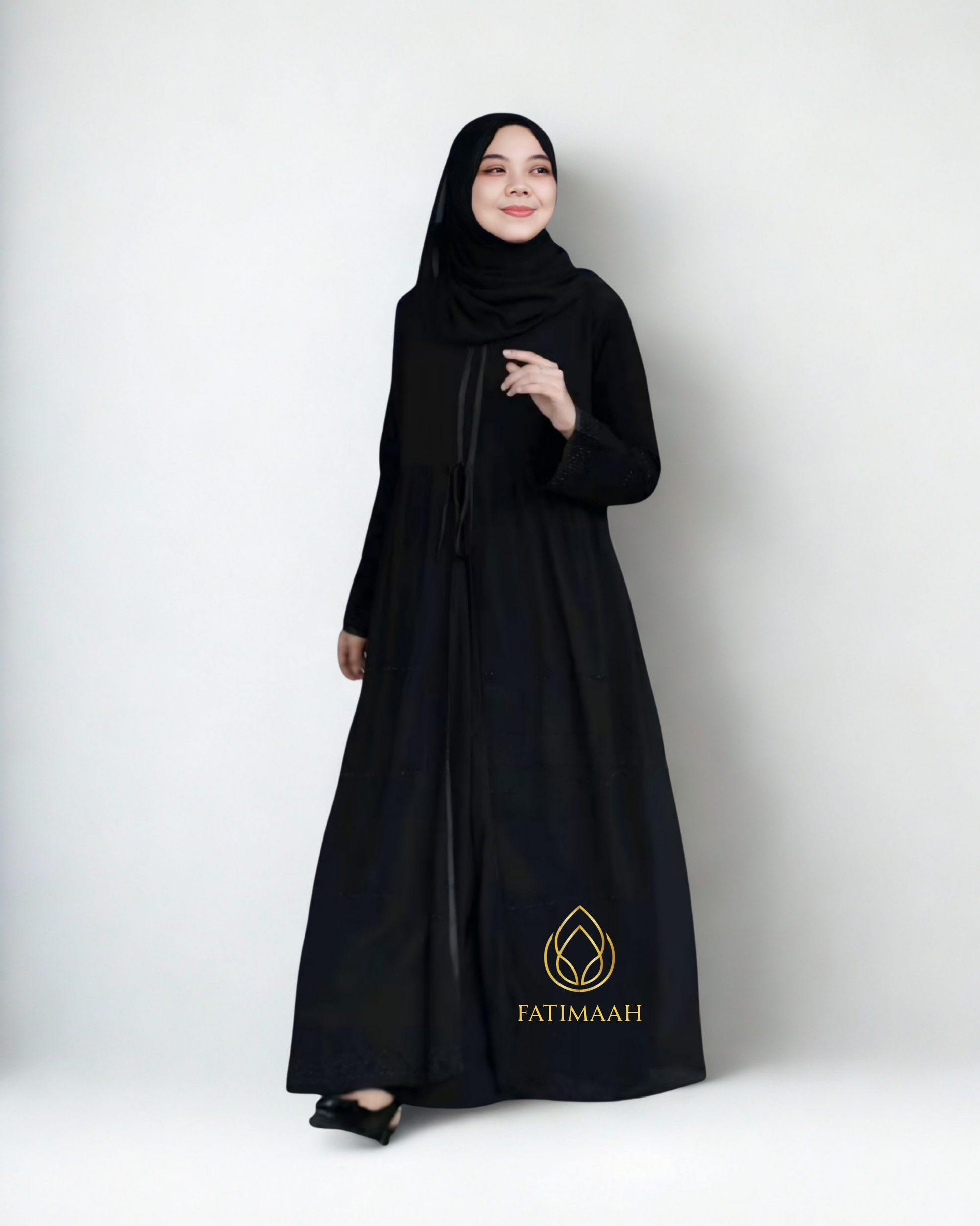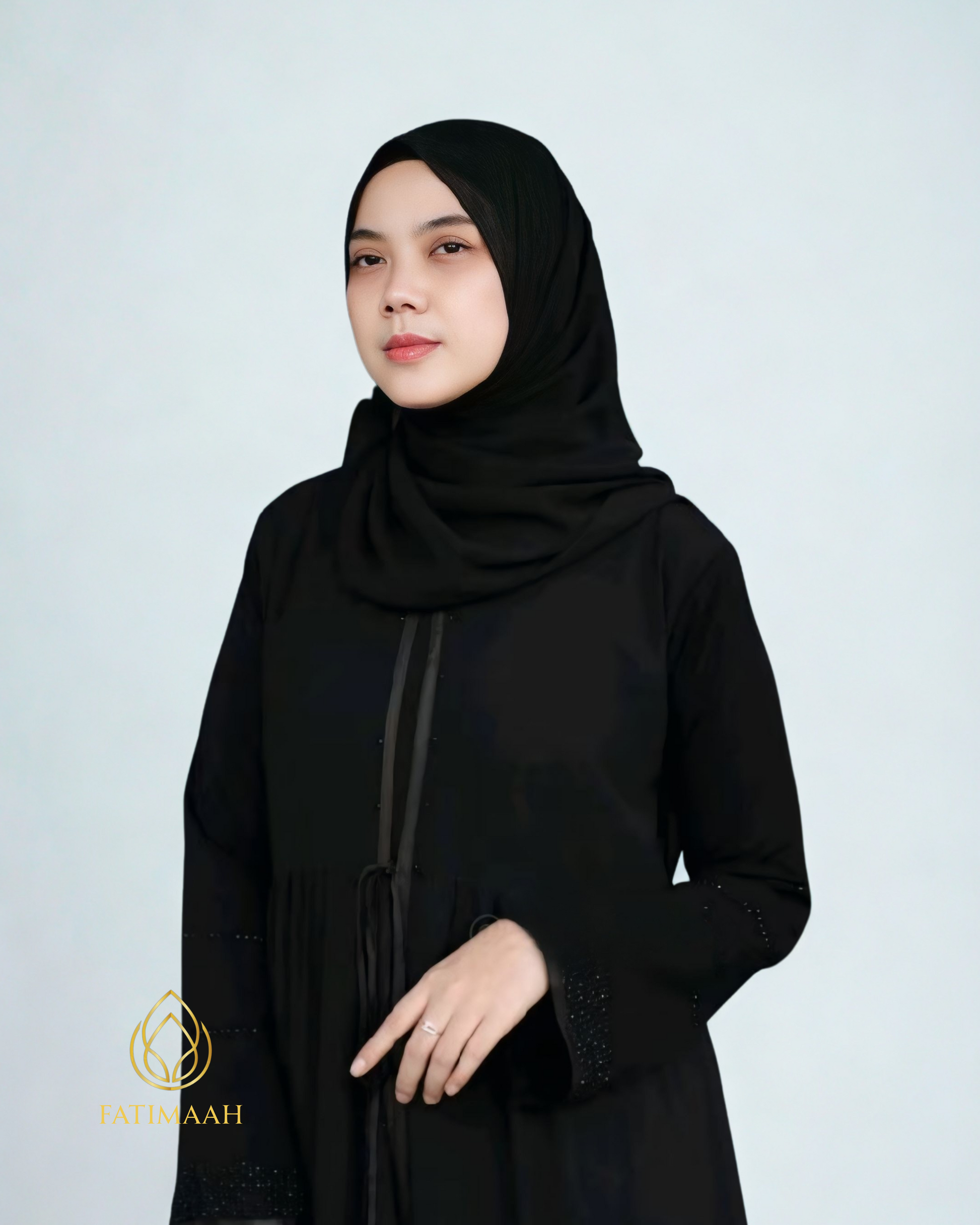 Abaya Alaidrus – Elegant Chiffon Layer with Black Bead Details by Fatimaah